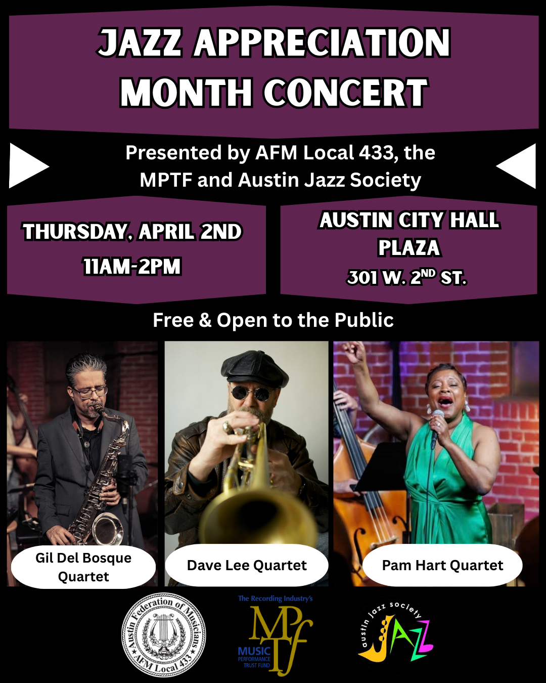 The Austin Federation of Musicians is the local chapter of the American Federation of Musicians of the U.S. and Canada. The Austin Local was founded in 1907 and since then has organized local musicians to improve wages, working conditions and other issues relating to employment.